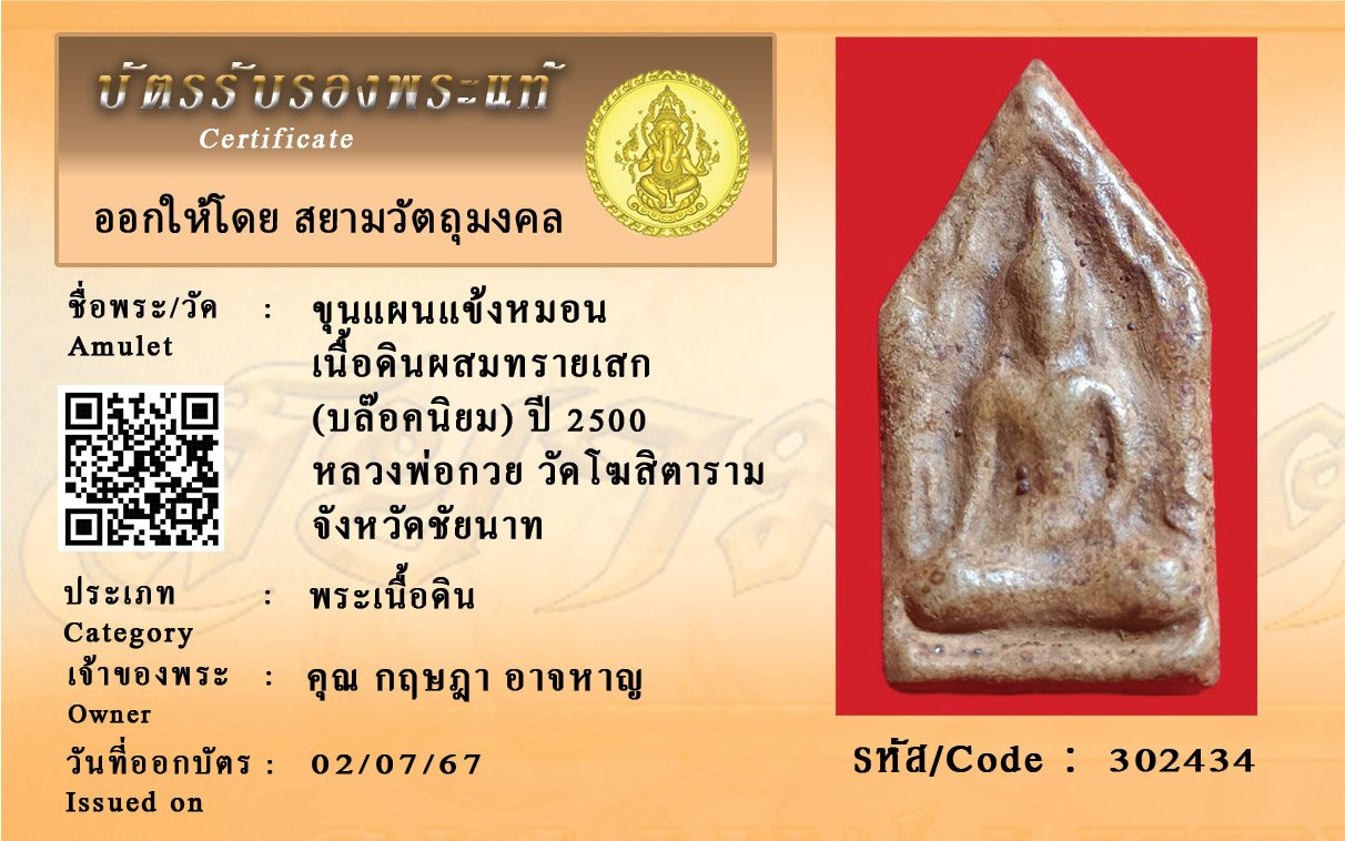 รหัสสินค้า : 302434 ขุนแผนแข้งหมอน เนื้อดินผสมทรายเสก (บล๊อคนิยม) ปี 2500 หลวงพ่อกวย วัดโฆสิตาราม จังหวัดชัยนาท