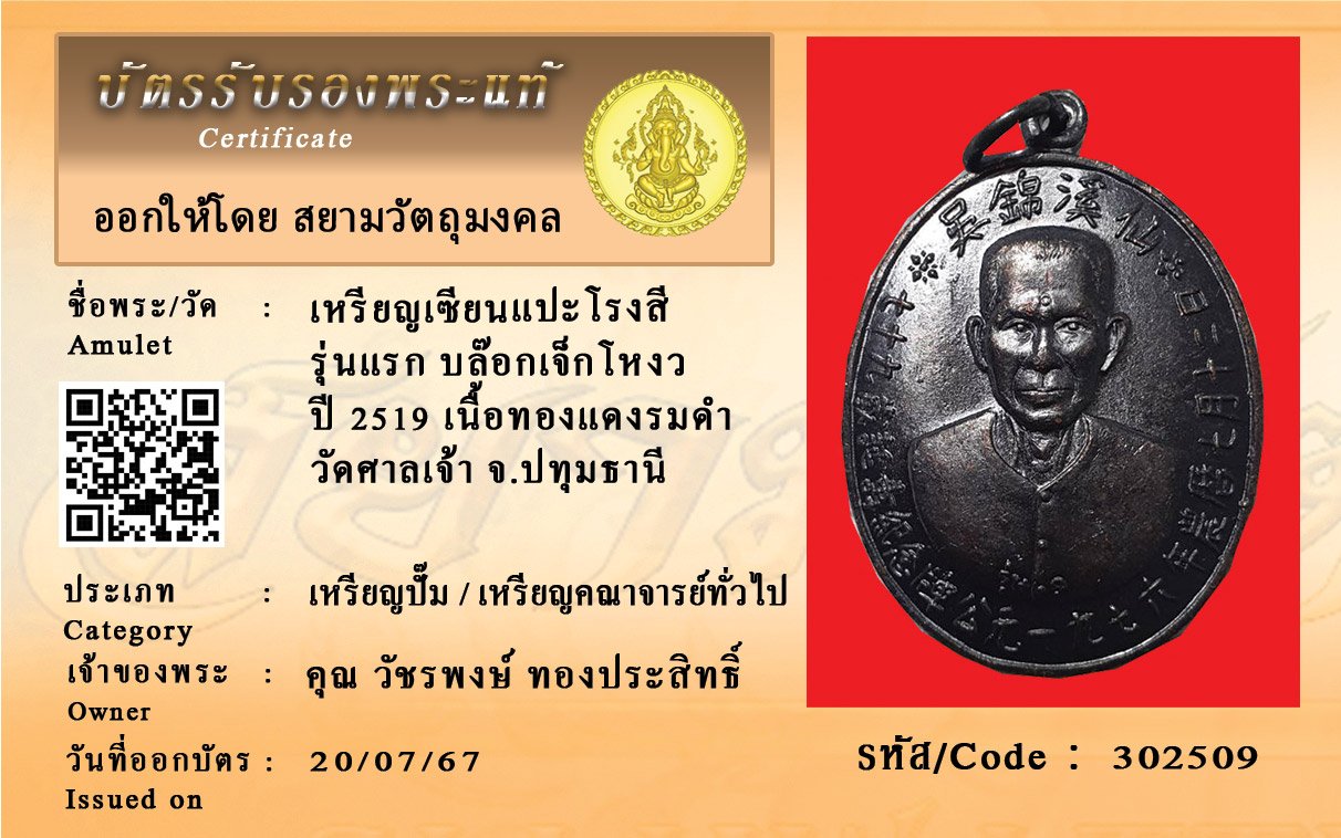 รหัสสินค้า : 302509 เหรียญเซียนแปะโรงสี รุ่นแรก บล๊อกเจ็กโหงว ปี 2519 เนื้อทองแดงรมดำ วัดศาลเจ้า จ.ปทุมธานี