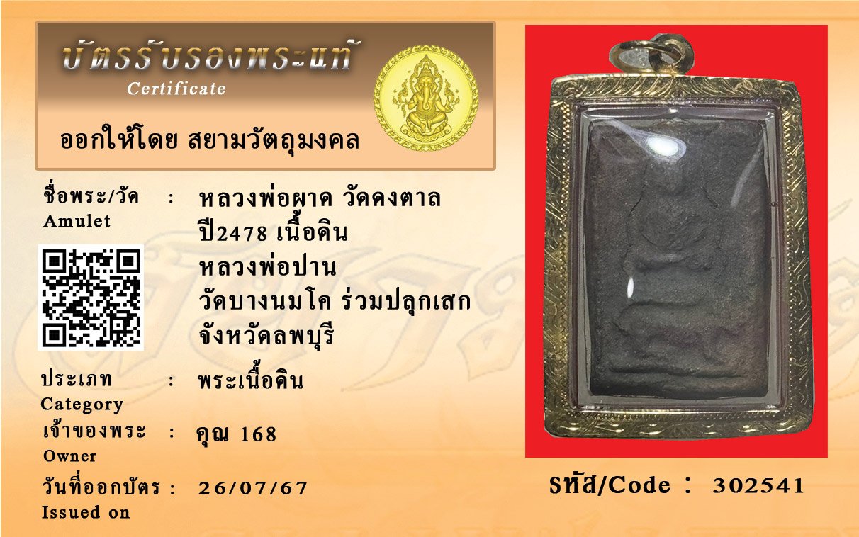 รหัสสินค้า : 302541 หลวงพ่อผาด วัดดงตาล ปี2478 เนื้อดิน หลวงพ่อปาน วัดบางนมโค ร่วมปลุกเสก จังหวัดลพบุรี