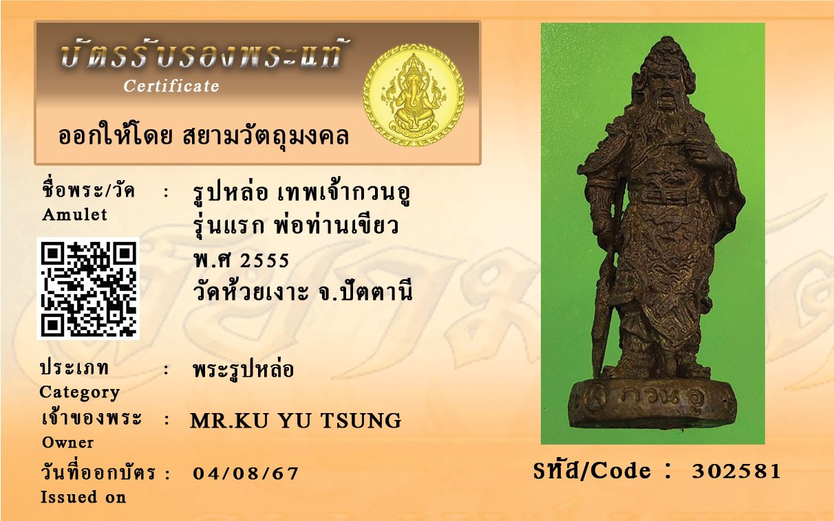รหัสสินค้า : 302581 รูปหล่อ เทพเจ้ากวนอู รุ่นแรก พ่อท่านเขียว พ.ศ 2555 วัดห้วยเงาะ จ.ปัตตานี