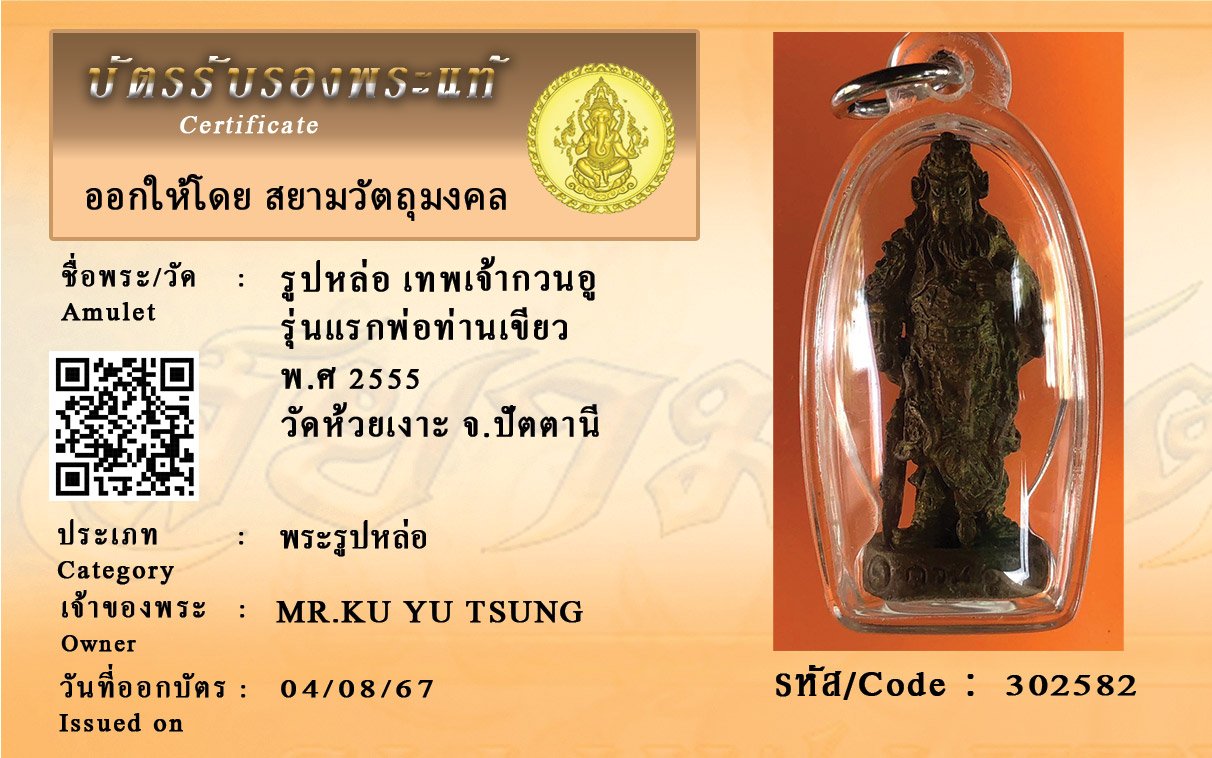 รหัสสินค้า : 302582 รูปหล่อ เทพเจ้ากวนอู รุ่นแรกพ่อท่านเขียว พ.ศ 2555 วัดห้วยเงาะ จ.ปัตตานี