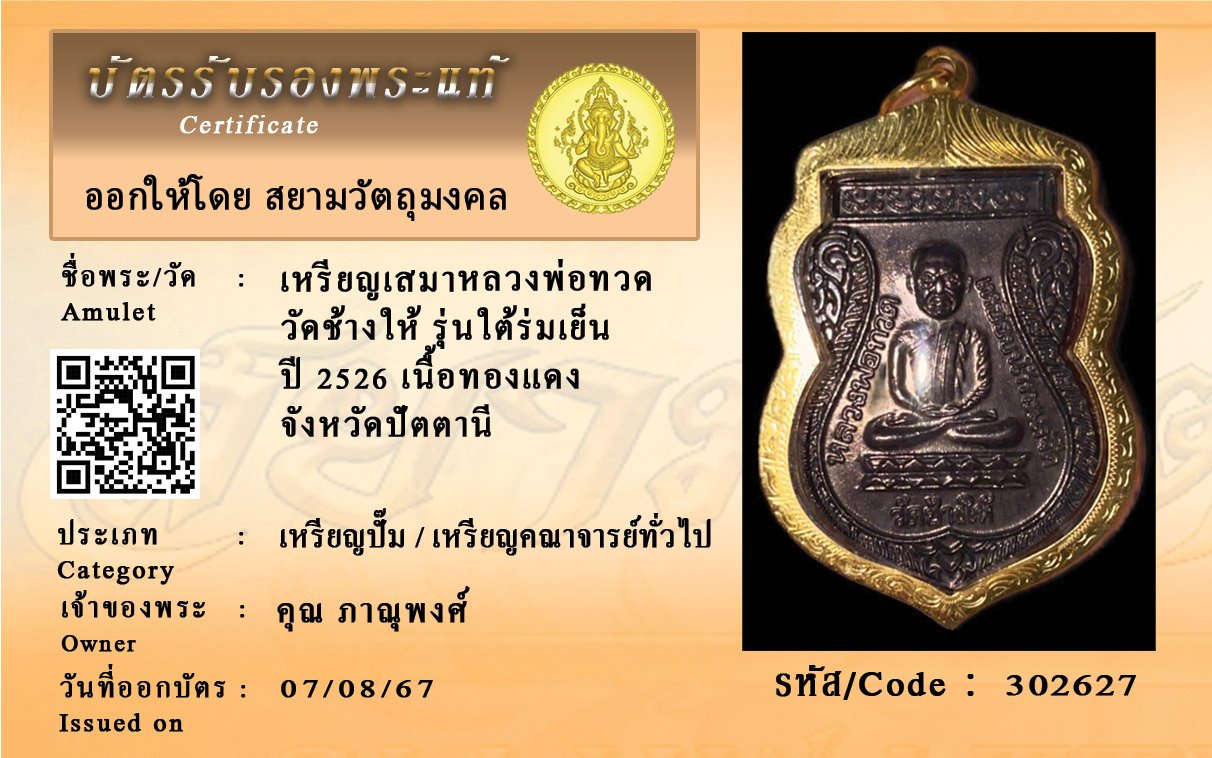 รหัสสินค้า : 302627 เหรียญเสมาหลวงพ่อทวด วัดช้างให้ รุ่นใต้ร่มเย็น ปี 2526 เนื้อทองแดง จังหวัดปัตตานี