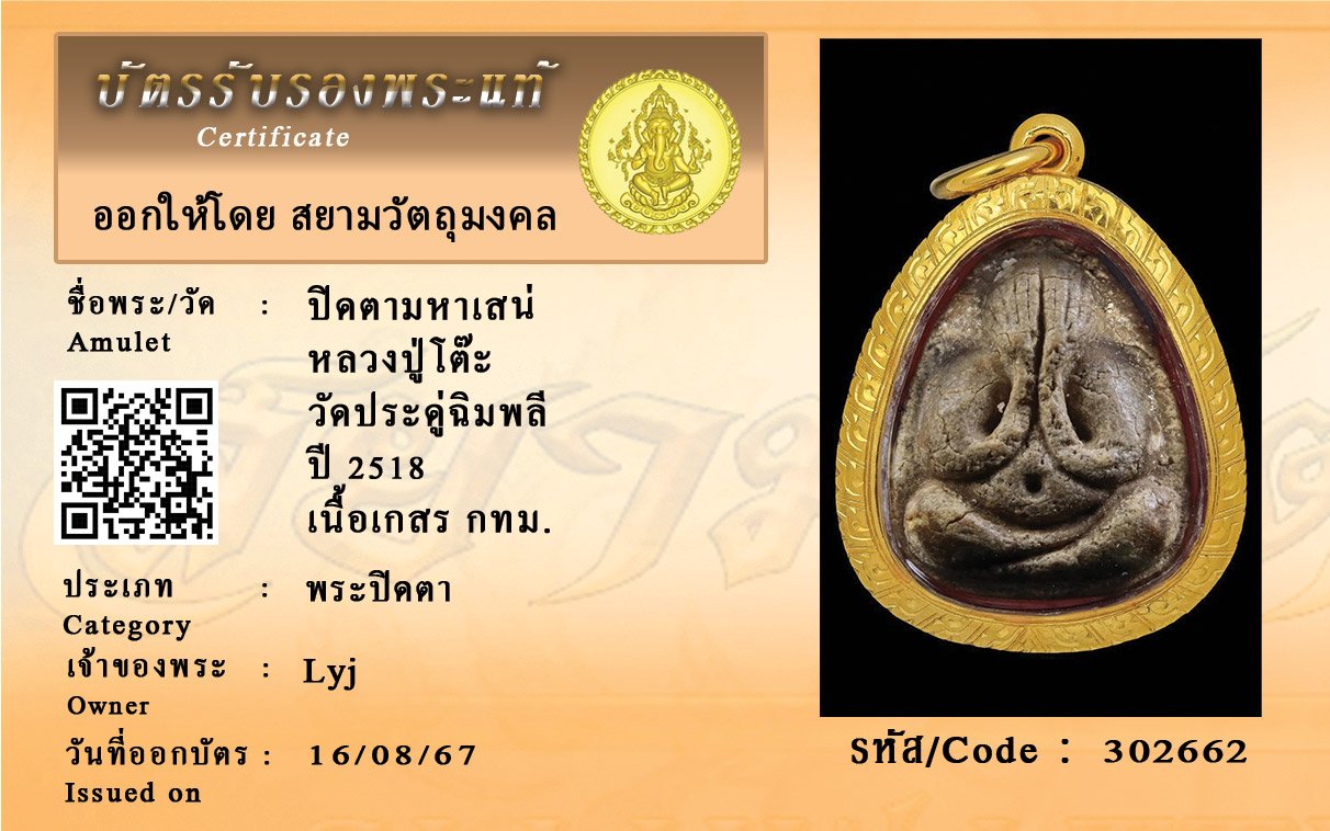 รหัสสินค้า : 302662 ปิดตามหาเสน่ หลวงปู่โต๊ะ วัดประดู่ฉิมพลี ปี 2518 เนื้อเกสร กทม.