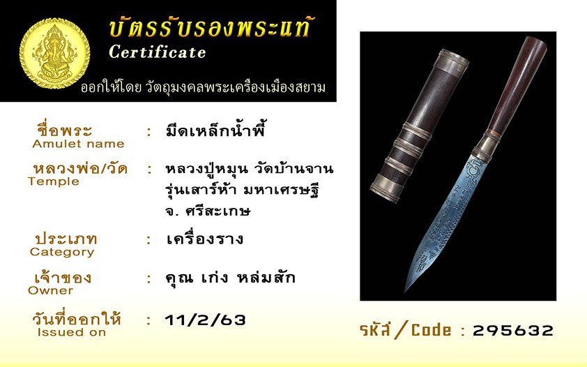 รหัสสินค้า : (295632) มีดเหล็กน้ำพี้ หลวงปู่หมุน วัดบ้านจาน รุ่นเสาร์ห้า มหาเศรษฐี ศรีษะเกษ
