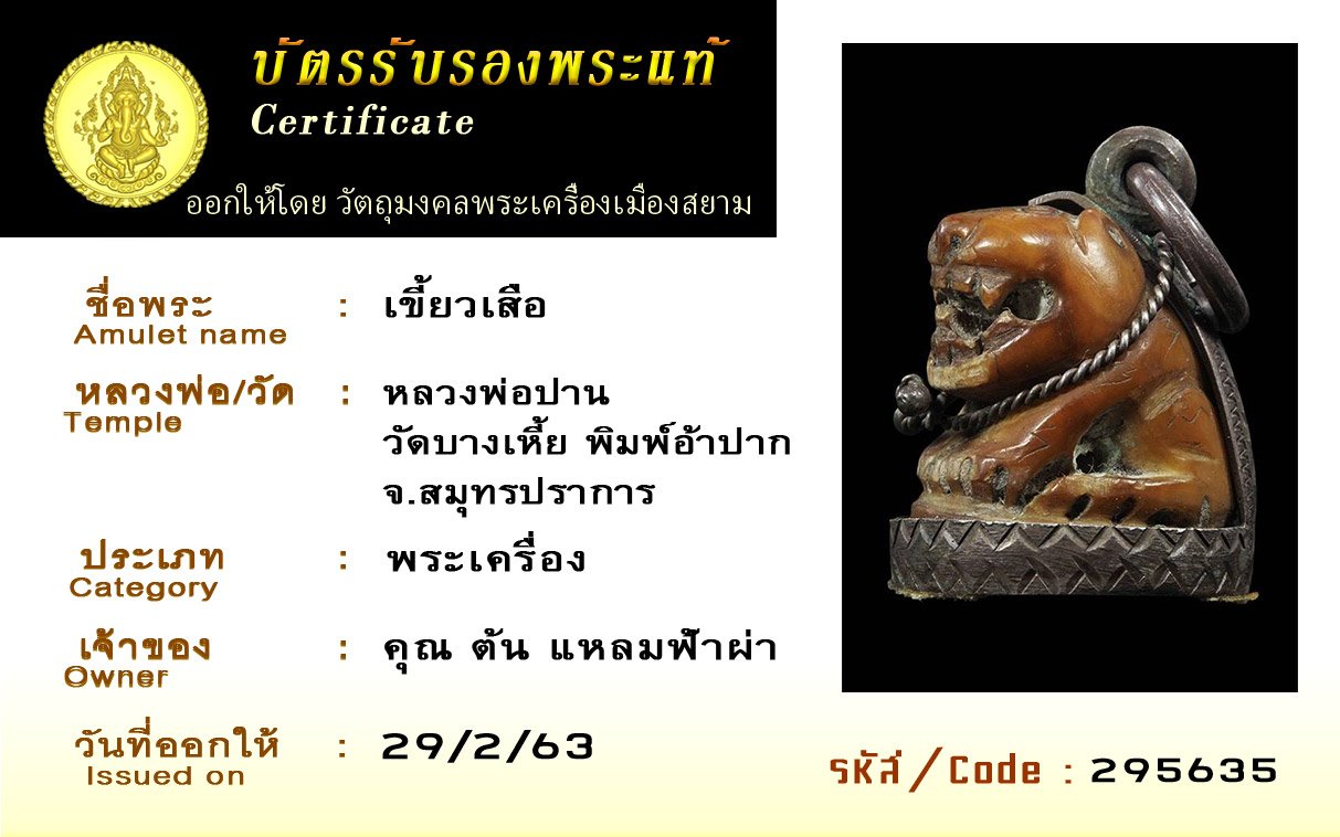 รหัสสินค้า : (295635) เขี้ยวเสือ หลวงพ่อปาน วัดบางเหี้ย พิมพ์อ้าปาก สมุทปราการ