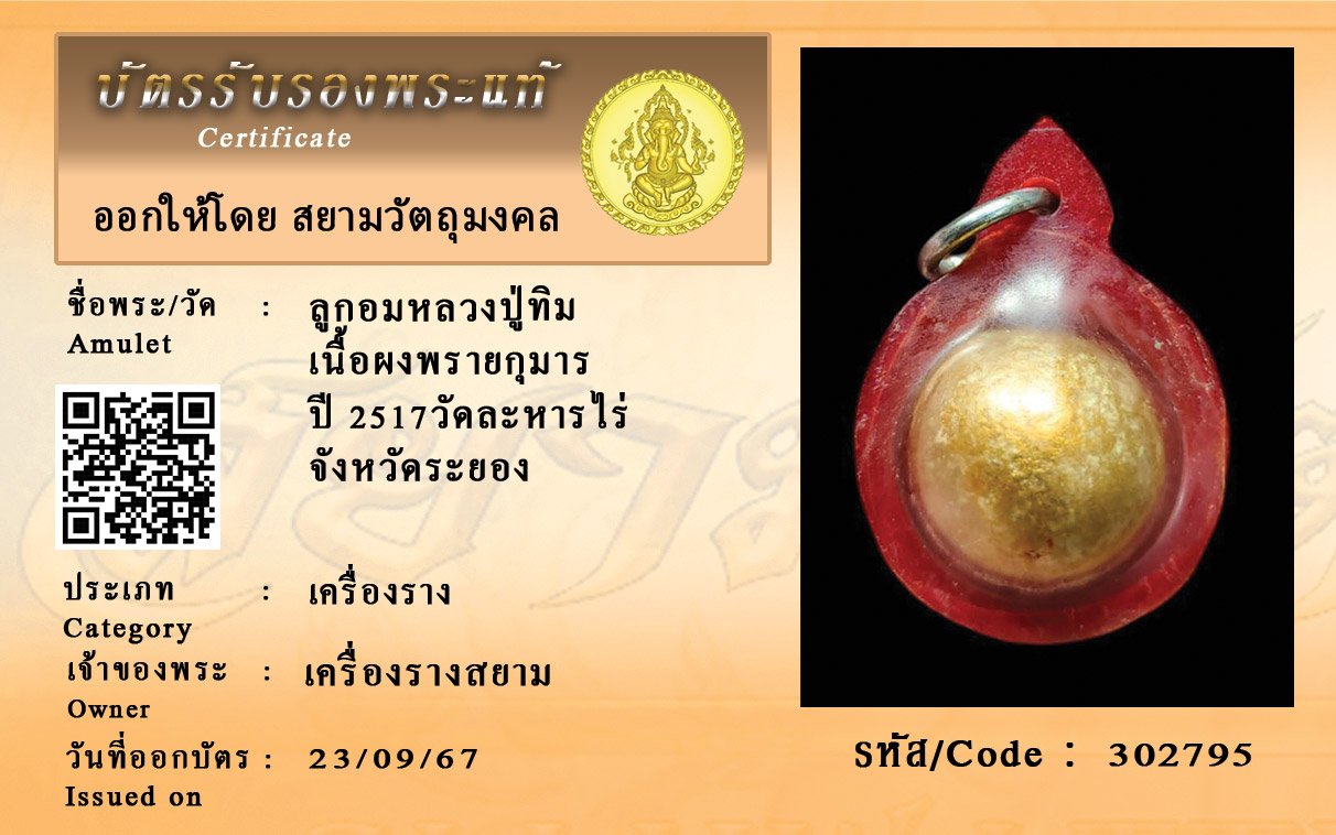 รหัสสินค้า : 302795 ลูกอมหลวงปู่ทิม เนื้อผงพรายกุมาร ปี 2517วัดละหารไร่ จังหวัดระยอง
