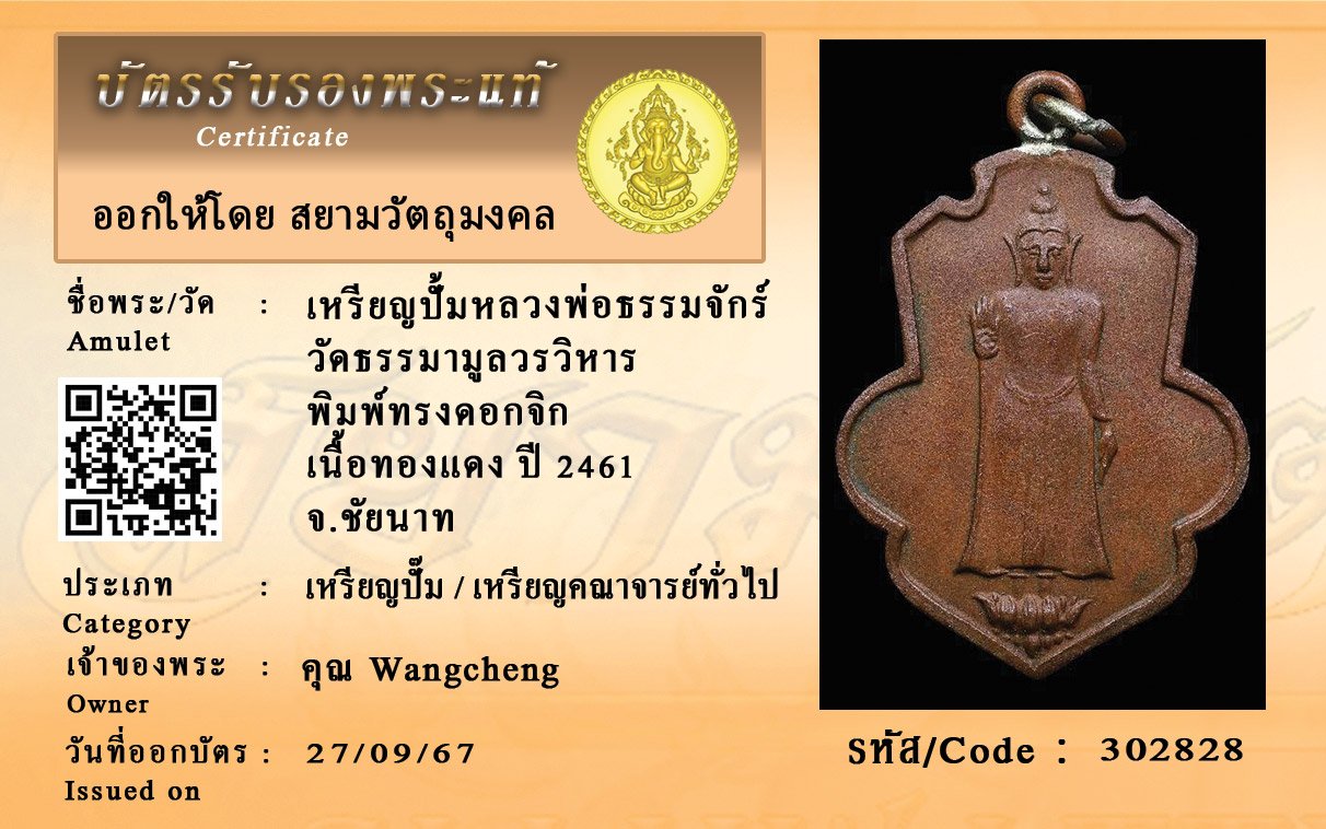 รหัสสินค้า : 302828 เหรียญปั้มหลวงพ่อธรรมจักร์ วัดธรรมามูลวรวิหาร พิมพ์ทรงดอกจิก เนื้อทองแดง ปี 2461 จ.ชัยนาท
