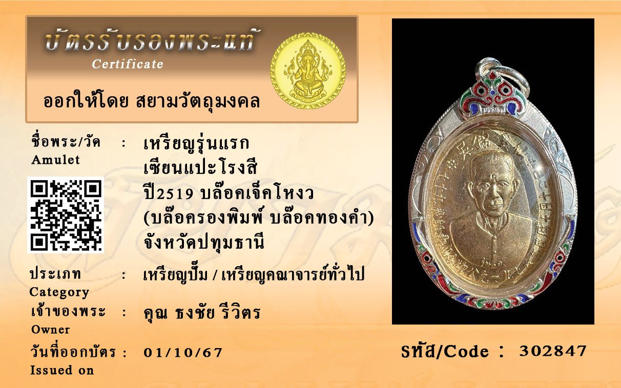 รหัสสินค้า : 302847 เหรียญรุ่นแรก เซียนแปะโรงสี ปี2519 บล๊อคเจ็คโหงว (บล๊อครองพิมพ์ บล๊อคทองคำ) จังหวัดปทุมธานี
