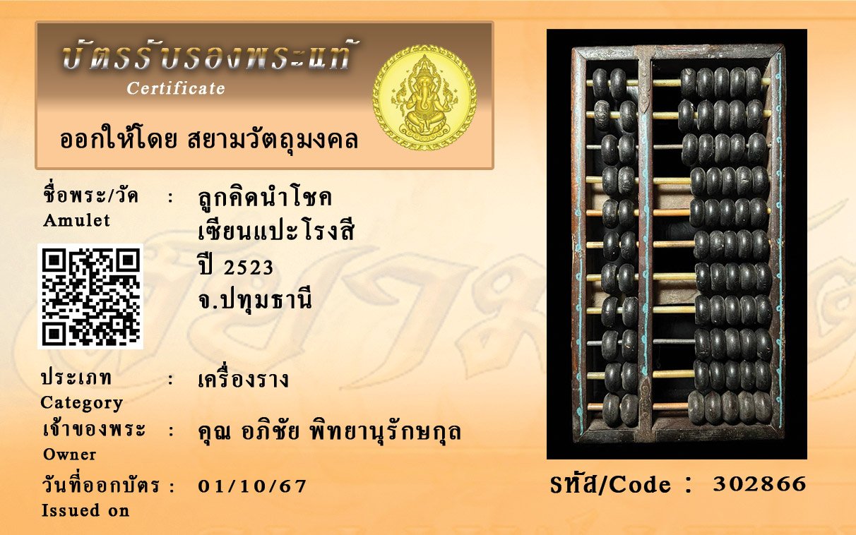 รหัสสินค้า : 302866 ลูกคิดนำโชค เซียนแปะโรงสี ปี 2523 จ.ปทุมธานี