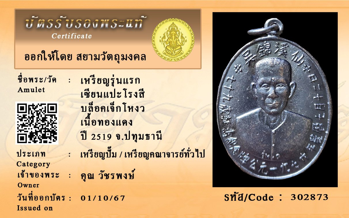 รหัสสินค้า : 302873 เหรียญรุ่นแรก เซียนแปะโรงสี บล็อคเจ็กโหงว เนื้อทองแดง ปี 2519 จ.ปทุมธานี