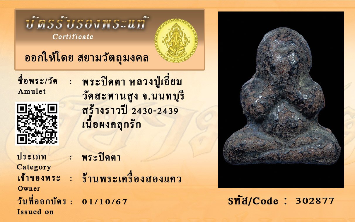 รหัสสินค้า : 302877 พระปิดตา หลวงปู่เอี่ยม วัดสะพานสูง จ.นนทบุรี สร้างราวปี 2430-2439 เนื้อผงคลุกรัก
