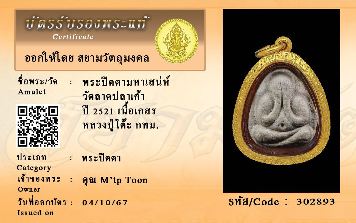 รหัสสินค้า : 302893 พระปิดตามหาเสน่ห์ วัดลาดปลาเค้า ปี 2521 เนื้อเกสร หลวงปู่โต๊ะ กทม.