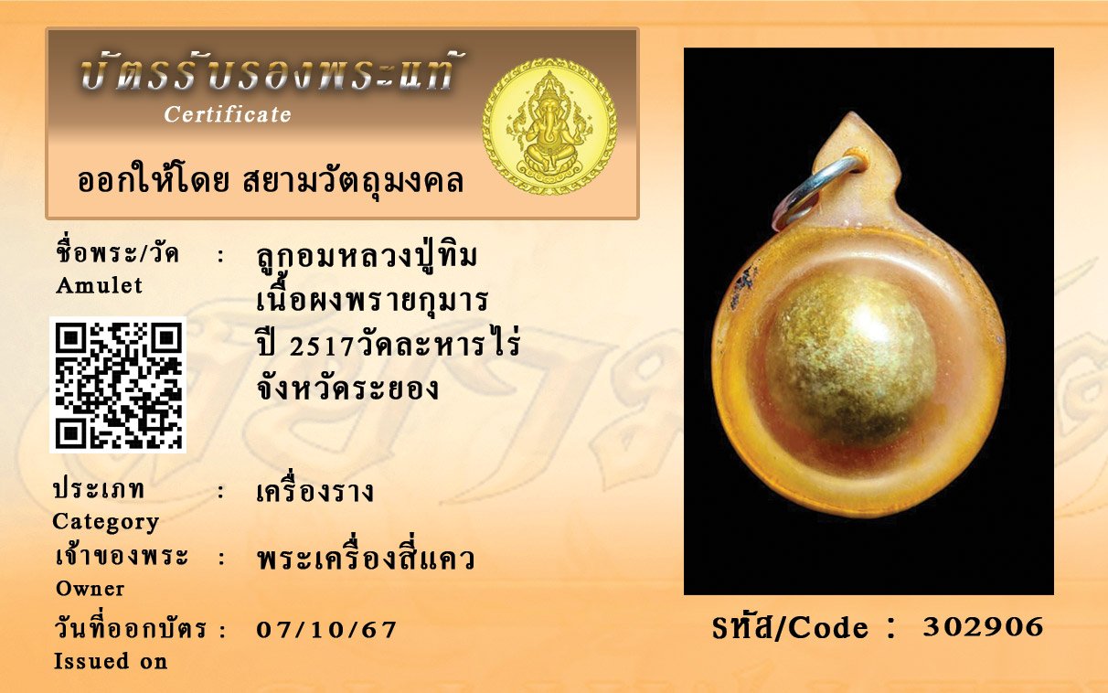 รหัสสินค้า : 302906 ลูกอมหลวงปู่ทิม เนื้อผงพรายกุมาร ปี 2517วัดละหารไร่ จังหวัดระยอง
