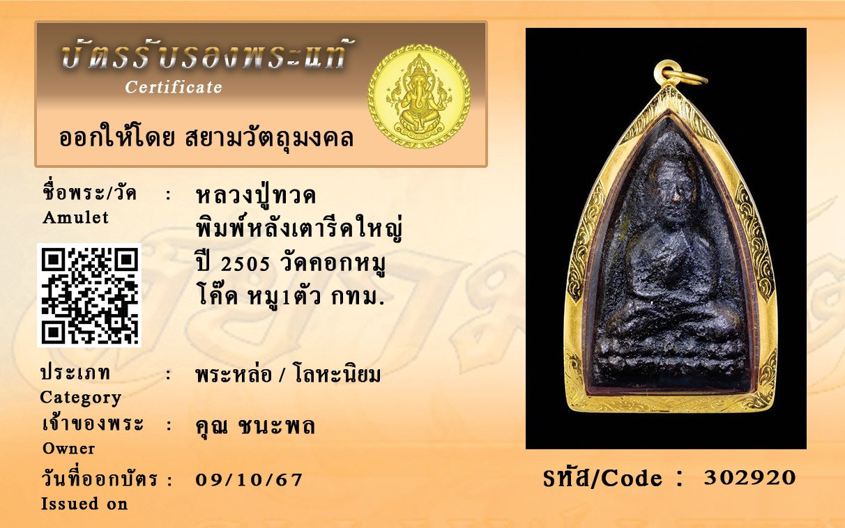 รหัสสินค้า : 302920 หลวงปู่ทวด พิมพ์หลังเตารีดใหญ่ ปี 2505 วัดคอกหมู โค๊ด หมู1ตัว กทม.