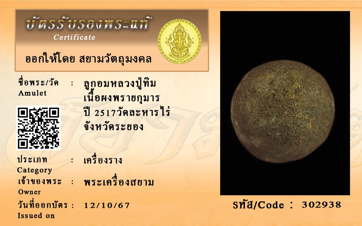 รหัสสินค้า : 302938 ลูกอมหลวงปู่ทิม เนื้อผงพรายกุมาร ปี 2517วัดละหารไร่ จังหวัดระยอง