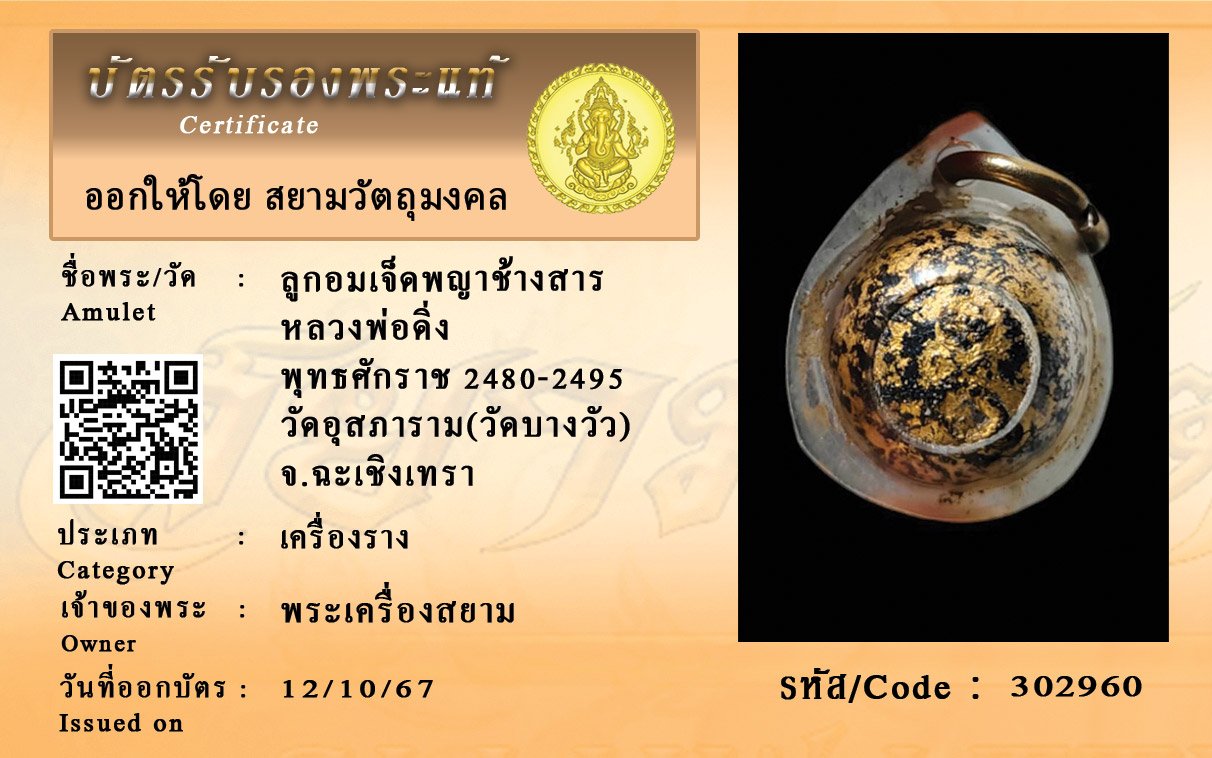 รหัสสินค้า : 302960 ลูกอมเจ็ดพญาช้างสาร หลวงพ่อดิ่ง พุทธศักราช 2480-2495 วัดอุสภาราม(วัดบางวัว) จ.ฉะเชิงเทรา