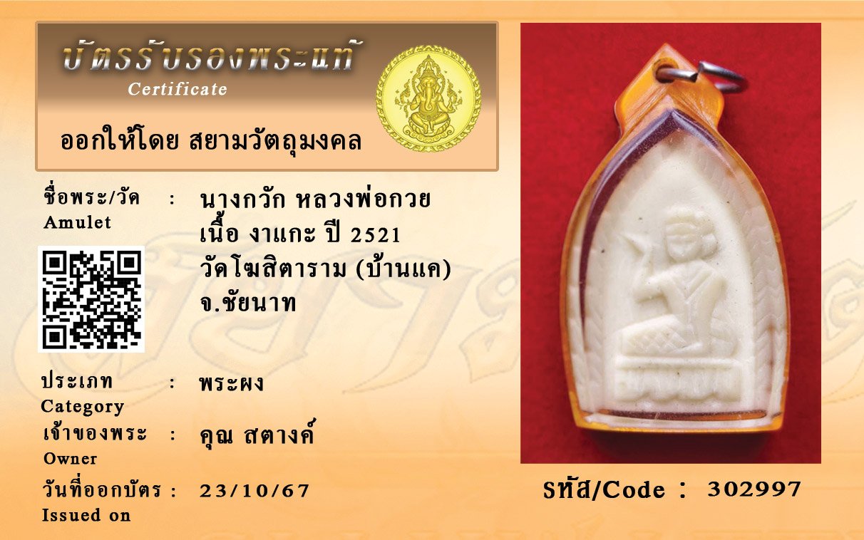 รหัสสินค้า : 302997 นางกวัก หลวงพ่อกวย เนื้อ งาแกะ ปี 2521 วัดโฆสิตาราม (บ้านแค) จ.ชัยนาท
