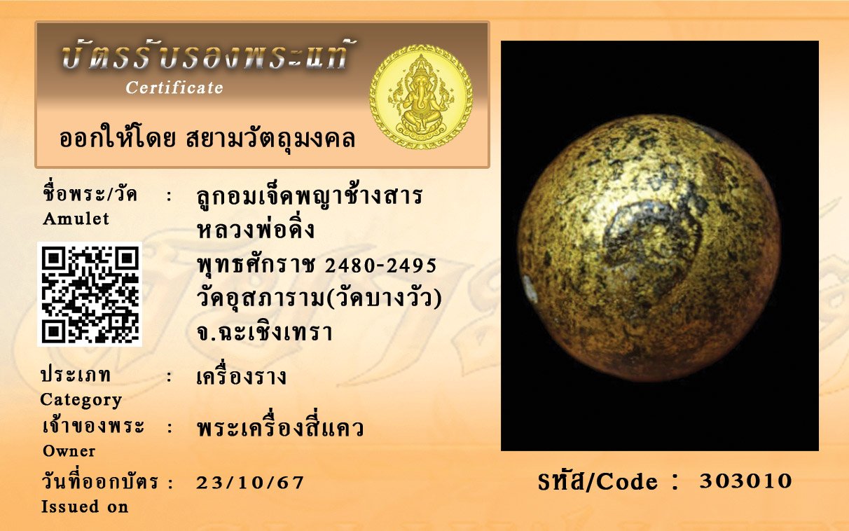 รหัสสินค้า : 303010 ลูกอมเจ็ดพญาช้างสาร หลวงพ่อดิ่ง พุทธศักราช 2480-2495 วัดอุสภาราม(วัดบางวัว) จ.ฉะเชิงเทรา