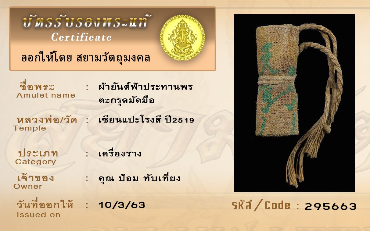 รหัสสินค้า : (295663) ผ้ายันต์ฟ้าประทานพร ตระกรุดมัดมือ เซียนแปะโรงสี ปี2519