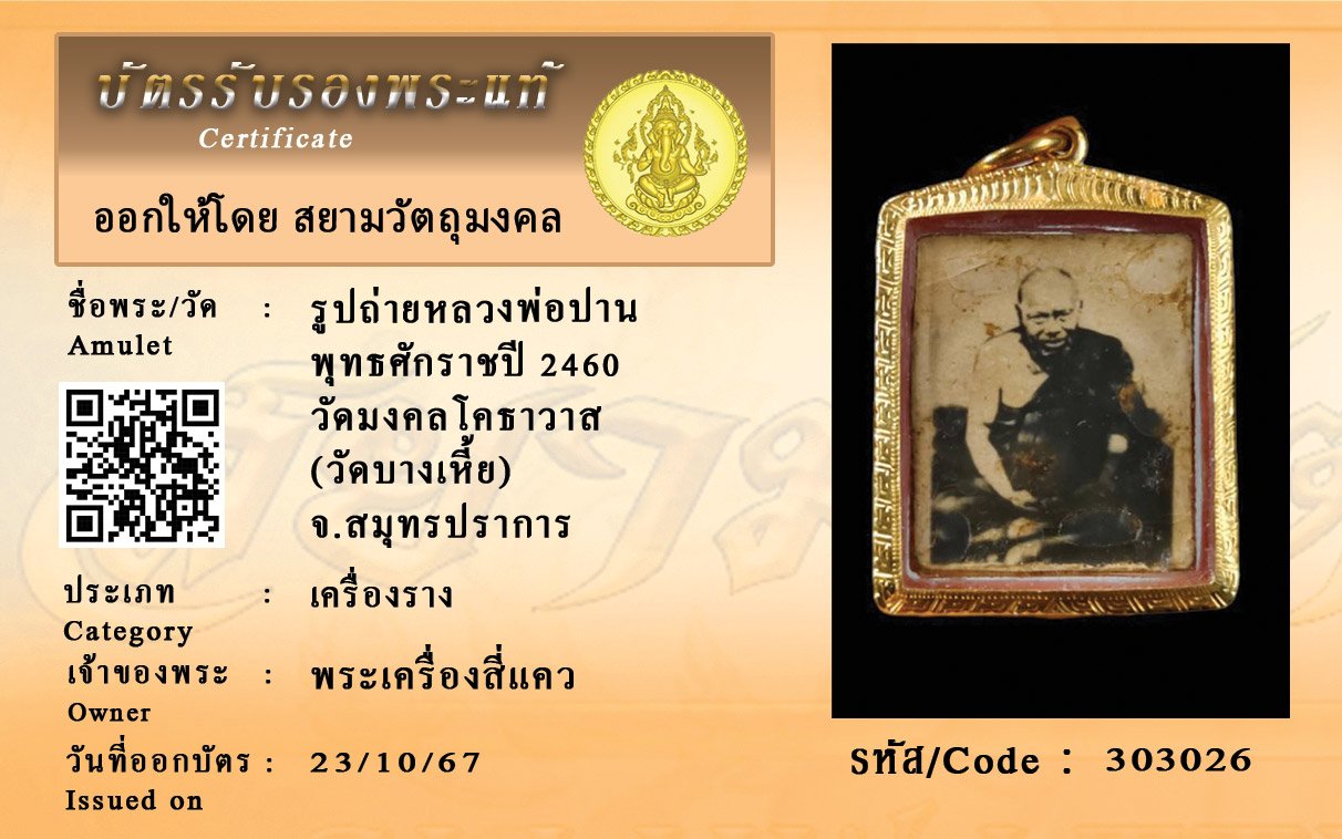 รหัสสินค้า : 303026 รูปถ่ายหลวงพ่อปาน พุทธศักราชปี 2460 วัดมงคลโคธาวาส (วัดบางเหี้ย) จ.สมุทรปราการ