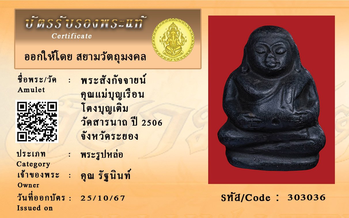 รหัสสินค้า : 303036 พระสังกัจจายน์ คุณแม่บุญเรือน โตงบุญเติม วัดสารนาถ ปี 2506 จังหวัดระยอง