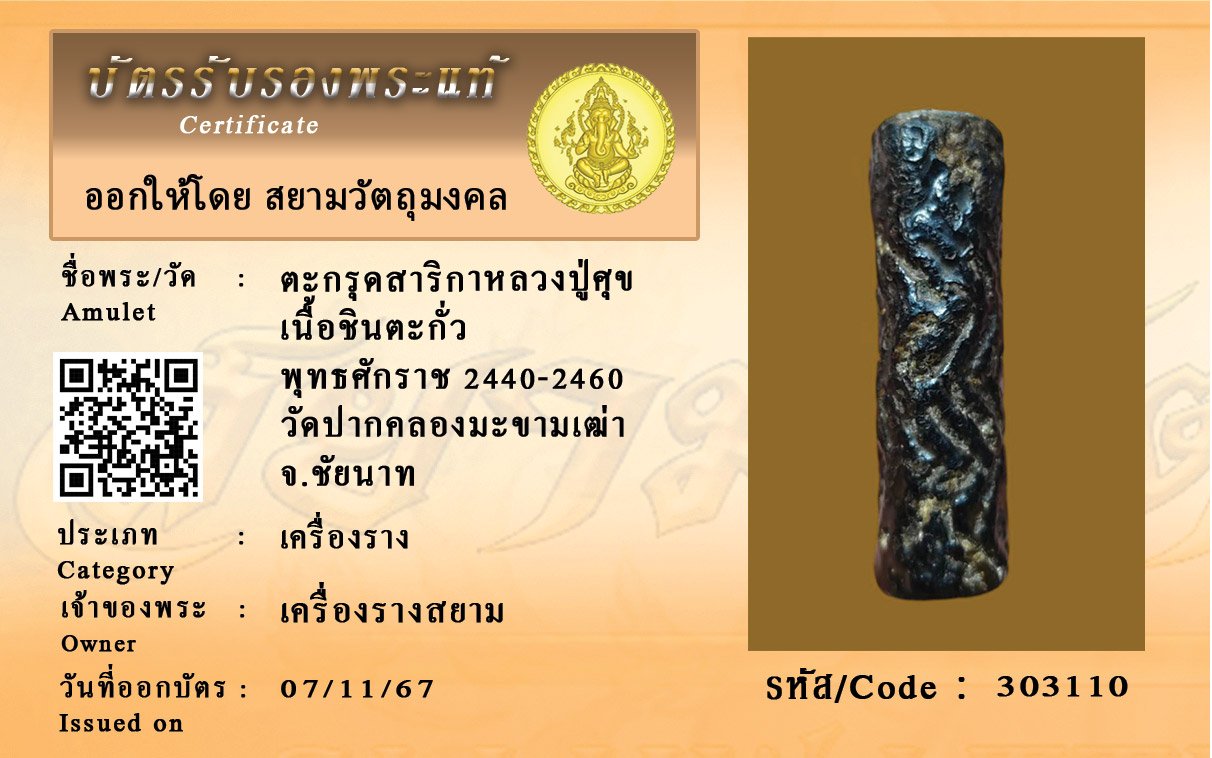 รหัสสินค้า : 303110 ตะกรุดสาริกาหลวงปู่ศุข เนื้อชินตะกั่ว พุทธศักราช 2440-2460 วัดปากคลองมะขามเฒ่า จ.ชัยนาท