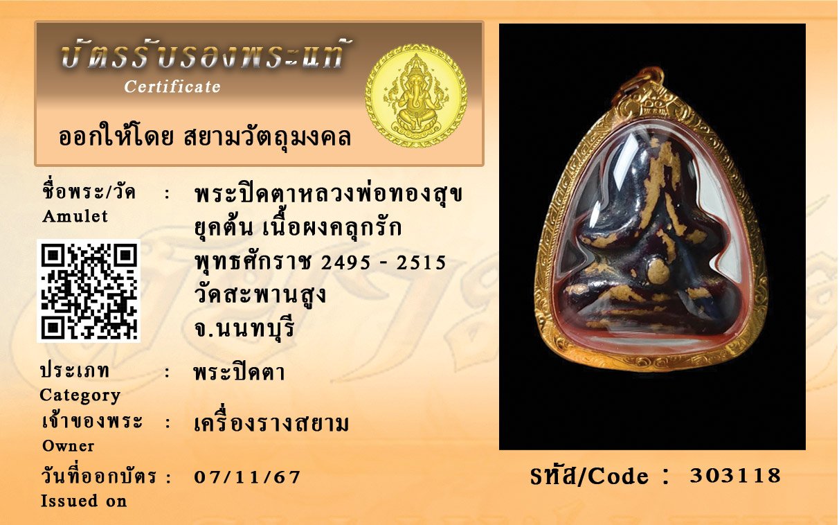 รหัสสินค้า : 303118 พระปิดตาหลวงพ่อทองสุข ยุคต้น เนื้อผงคลุกรัก พุทธศักราช 2495 - 2515 วัดสะพานสูง จ.นนทบุรี
