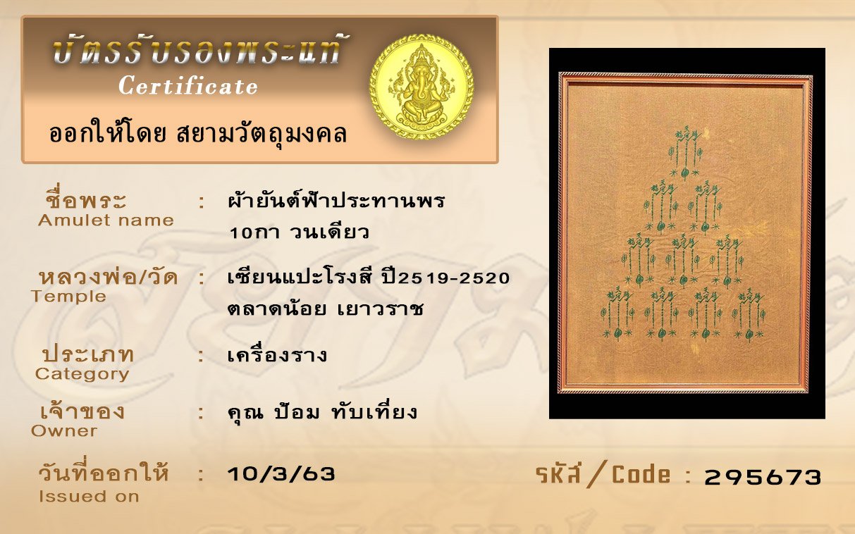 รหัสสินค้า : (295673) ผ้ายันต์ฟ้าประทานพร 10กา วนเดียว เซียนแปะโรงสี ปี2519-2520