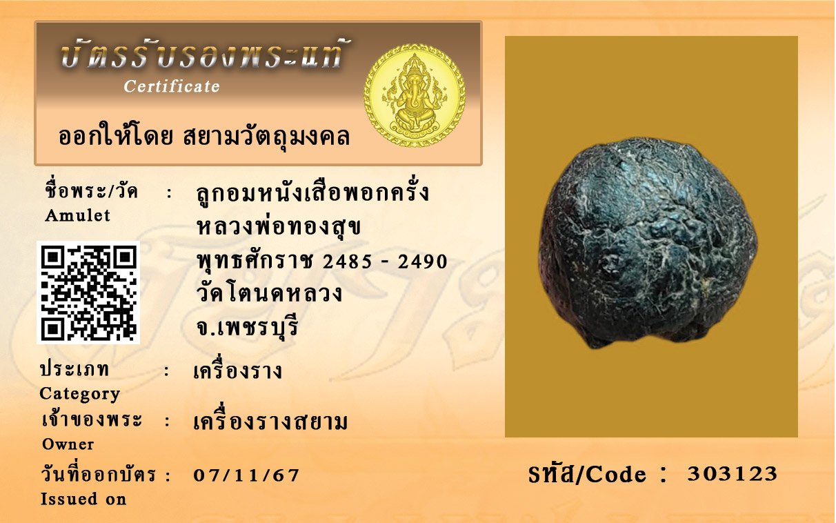 รหัสสินค้า : 303123 ลูกอมหนังเสือพอกครั่ง หลวงพ่อทองสุข พุทธศักราช 2485 - 2490 วัดโตนดหลวง จ.เพชรบุรี