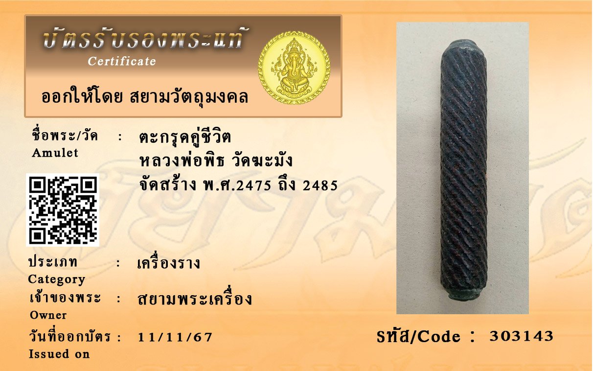 รหัสสินค้า : 303143 ตะกรุดคู่ชีวิต หลวงพ่อพิธ วัดฆะมัง จัดสร้าง พ.ศ.2475 ถึง 2485