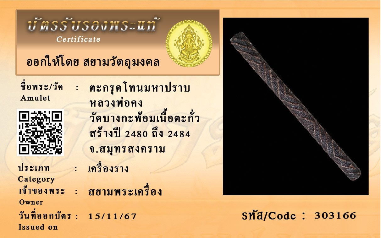 รหัสสินค้า : 303166 ตะกรุดโทนมหาปราบ หลวงพ่อคง วัดบางกะพ้อมเนื้อตะกั่ว สร้างปี 2480 ถึง 2484 จ.สมุทรสงคราม