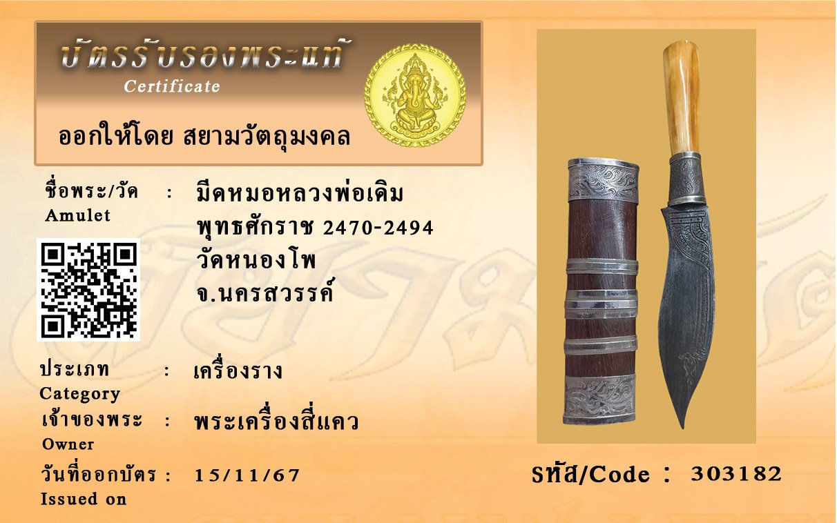 รหัสสินค้า : 303182 มีดหมอหลวงพ่อเดิม พุทธศักราช 2470-2494 วัดหนองโพ จ.นครสวรรค์