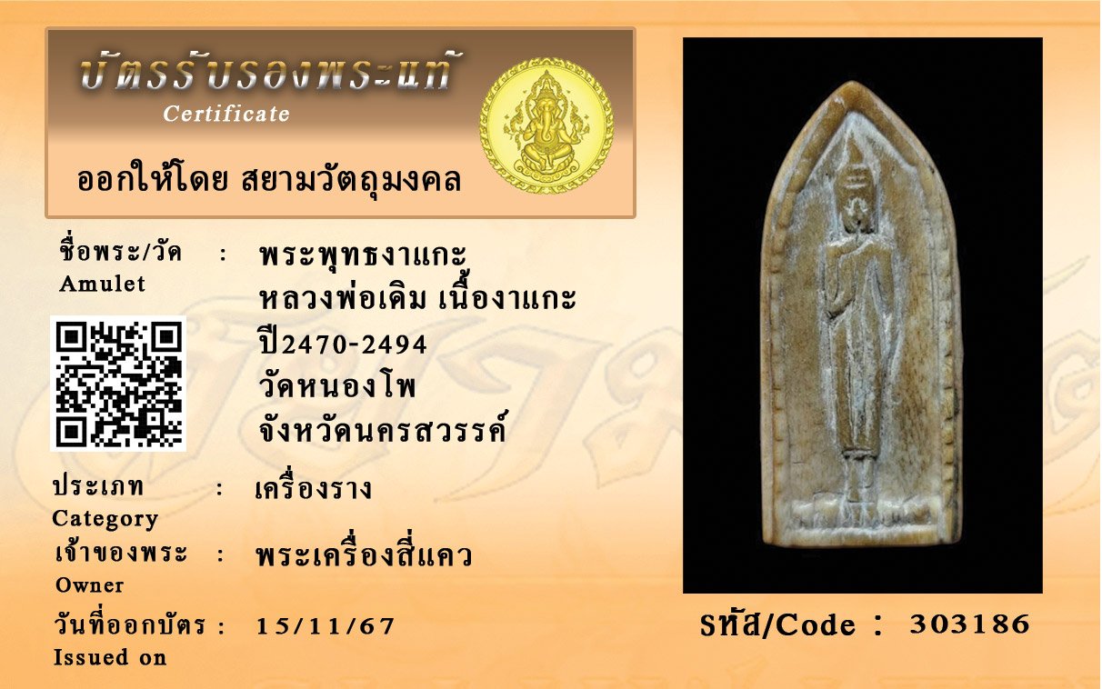 รหัสสินค้า : 303186 พระพุทธงาแกะ หลวงพ่อเดิม เนื้องาแกะ ปี2470-2494 วัดหนองโพ จังหวัดนครสวรรค์