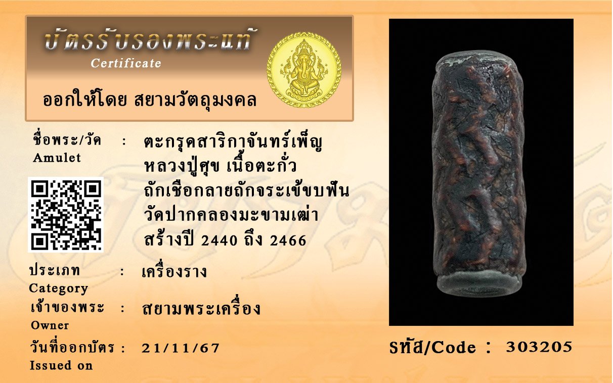 รหัสสินค้า : 303205 ตะกรุดสาริกาจันทร์เพ็ญ หลวงปู่ศุข เนื้อตะกั่ว ถักเชือกลายถักจระเข้ขบฟัน วัดปากคลองมะขามเฒ่า สร้างปี 2440 ถึง 2466