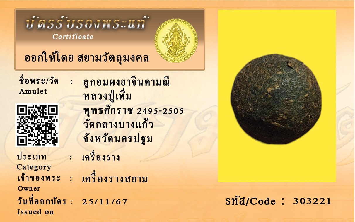 รหัสสินค้า : 303221 ลูกอมผงยาจินดามณี หลวงปู่เพิ่ม พุทธศักราช 2495-2505 วัดกลางบางแก้ว จังหวัดนครปฐม