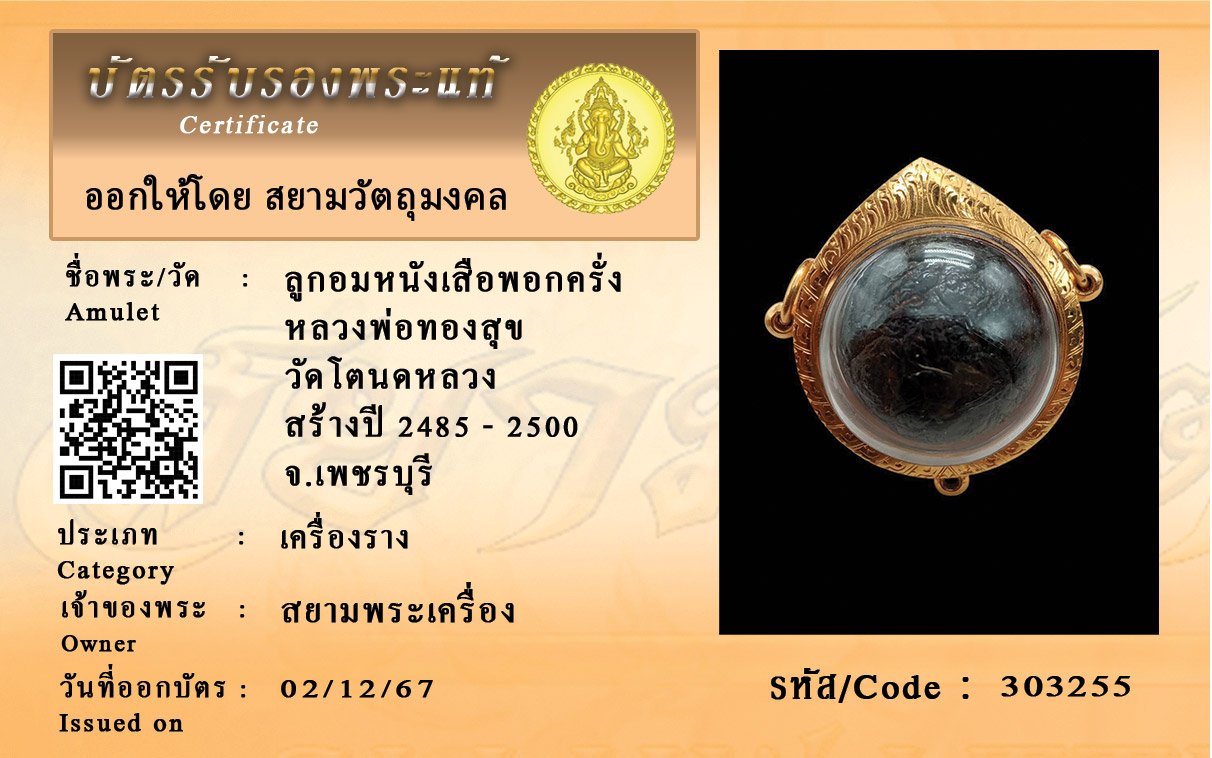 รหัสสินค้า : 303255 ลูกอมหนังเสือพอกครั่ง หลวงพ่อทองสุข วัดโตนดหลวง สร้างปี 2485 - 2500 จ.เพชรบุรี