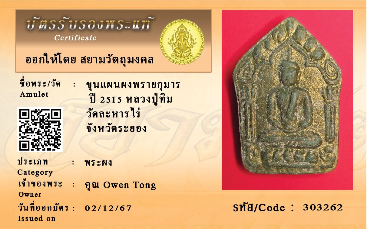 รหัสสินค้า : 303262 ขุนแผนผงพรายกุมาร ปี 2515 หลวงปู่ทิม วัดละหารไร่ จังหวัดระยอง