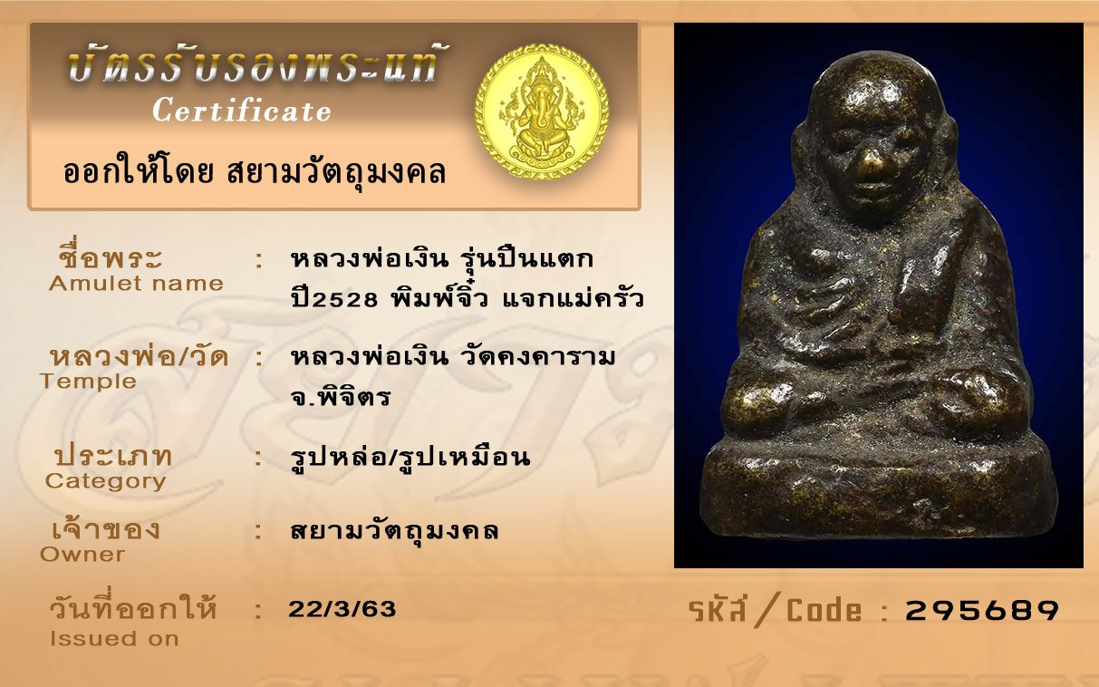 รหัสสินค้า : (295689) หลวงพ่อเงินรุ่นปืนแตก ปี2528 วัดคงคารามพิมพ์จิ๋วแจกแม่ครัว