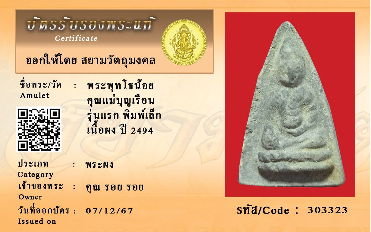 รหัสสินค้า : 303323 พระพุทโธน้อย คุณแม่บุญเรือน รุ่นแรก พิมพ์เล็ก เนื้อผง ปี 2494