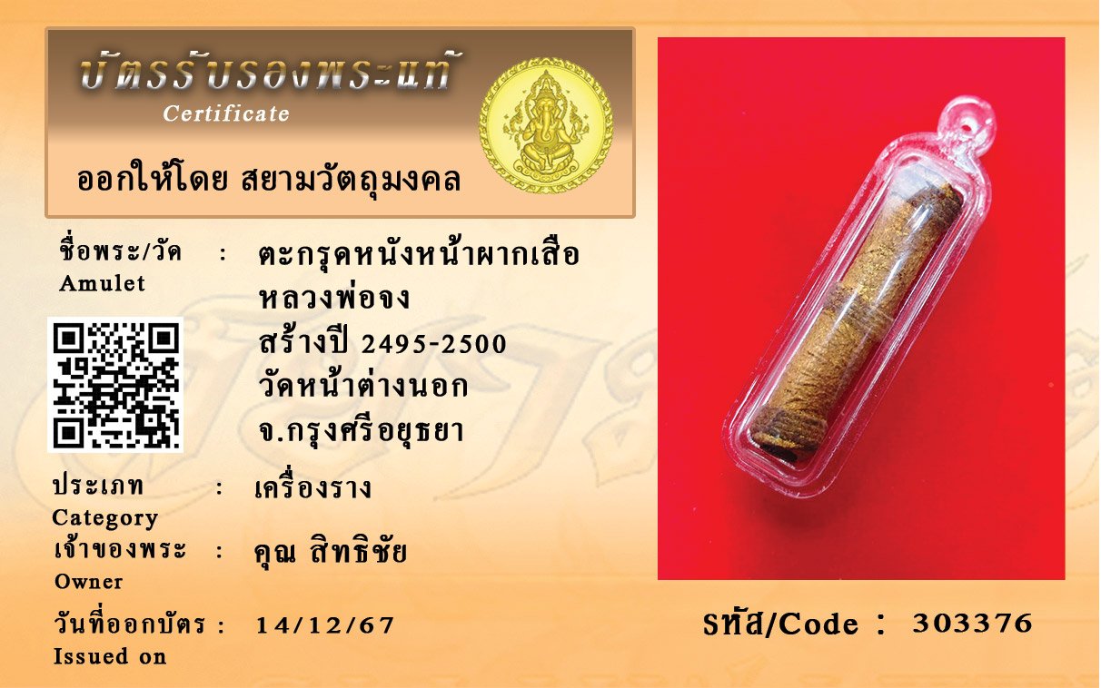 รหัสสินค้า : 303376 ตะกรุดหนังหน้าผากเสือ หลวงพ่อจง สร้างปี 2495-2500 วัดหน้าต่างนอก จ.กรุงศรีอยุธยา
