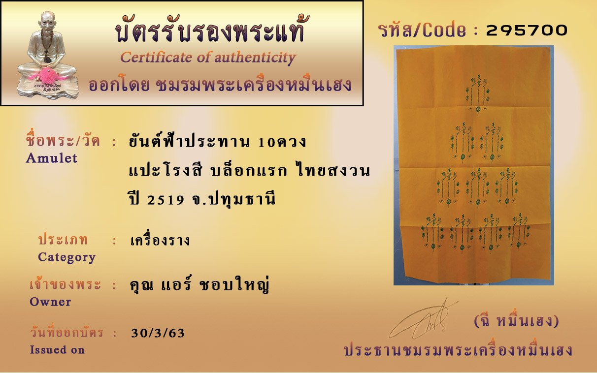 รหัสสินค้า : (295700) ยันต์ฟ้าประทาน 10ดวง แปะโรงสี บล็อกแรก ไทยสงวน ปี 2519 จ.ปทุมธานี