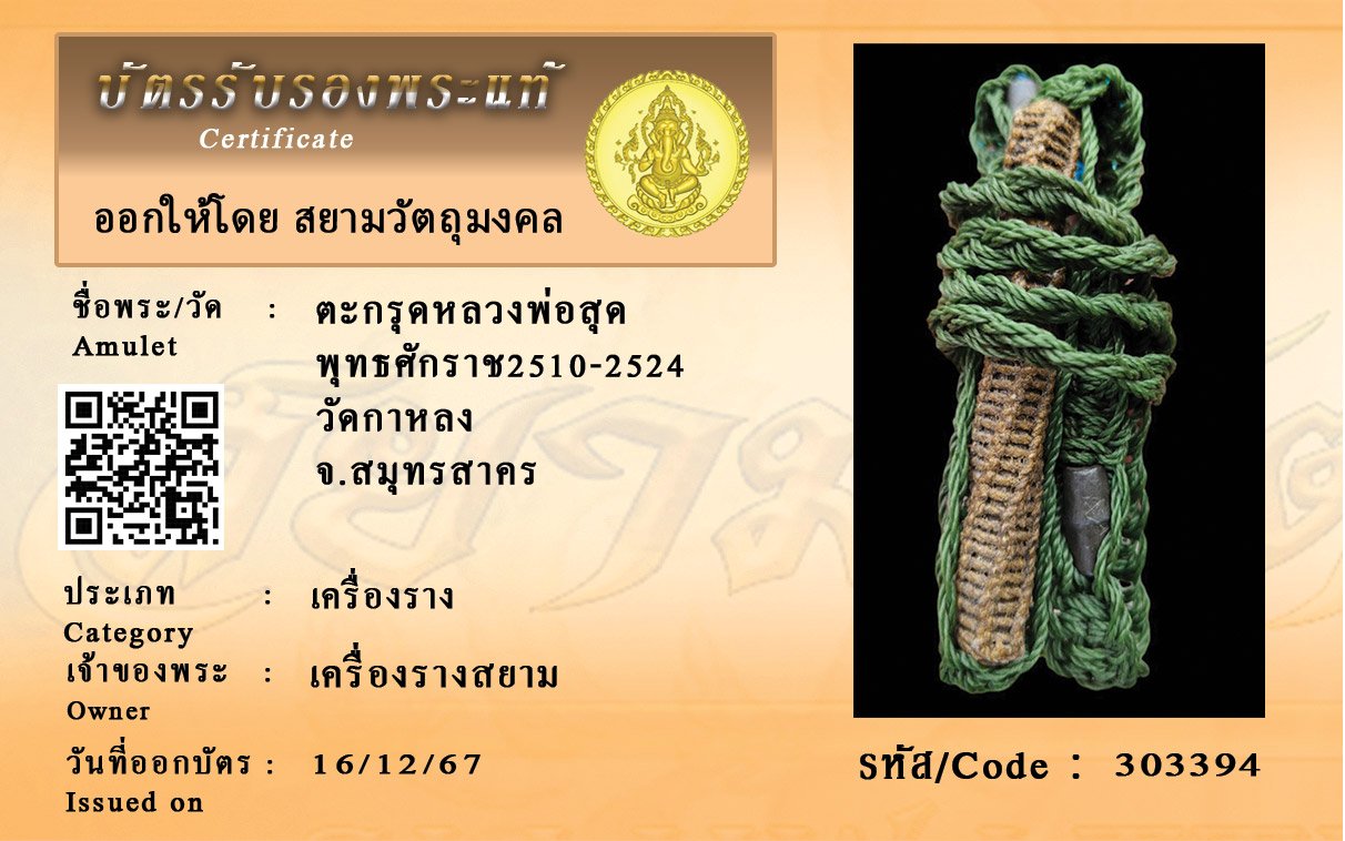 รหัสสินค้า : 303394 ตะกรุดหลวงพ่อสุด พุทธศักราช2510-2524 วัดกาหลง จ.สมุทรสาคร