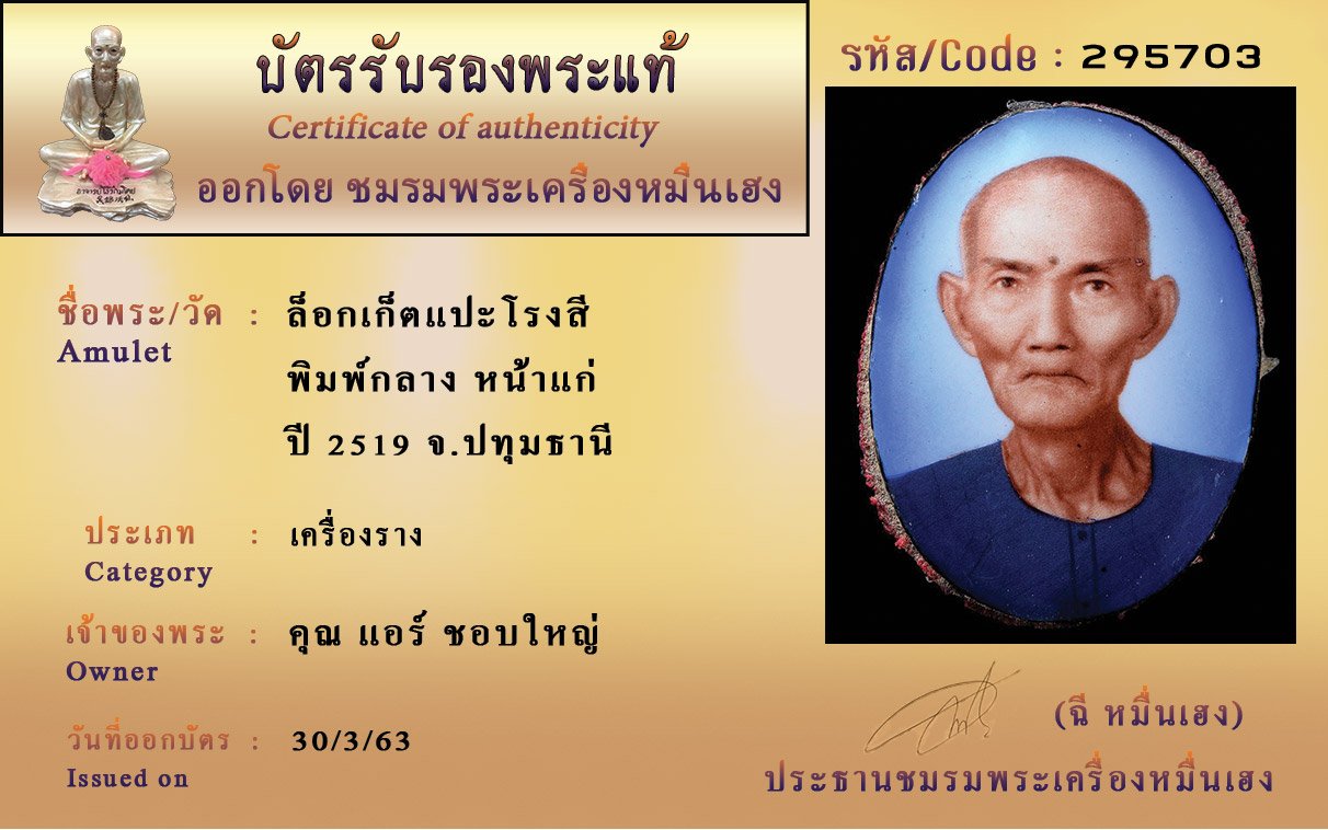 รหัสสินค้า : (295703) ล็อกเก็ตแปะโรงสี พิมพ์กลาง หน้าแก่ปี 2519 จ.ปทุมธานี