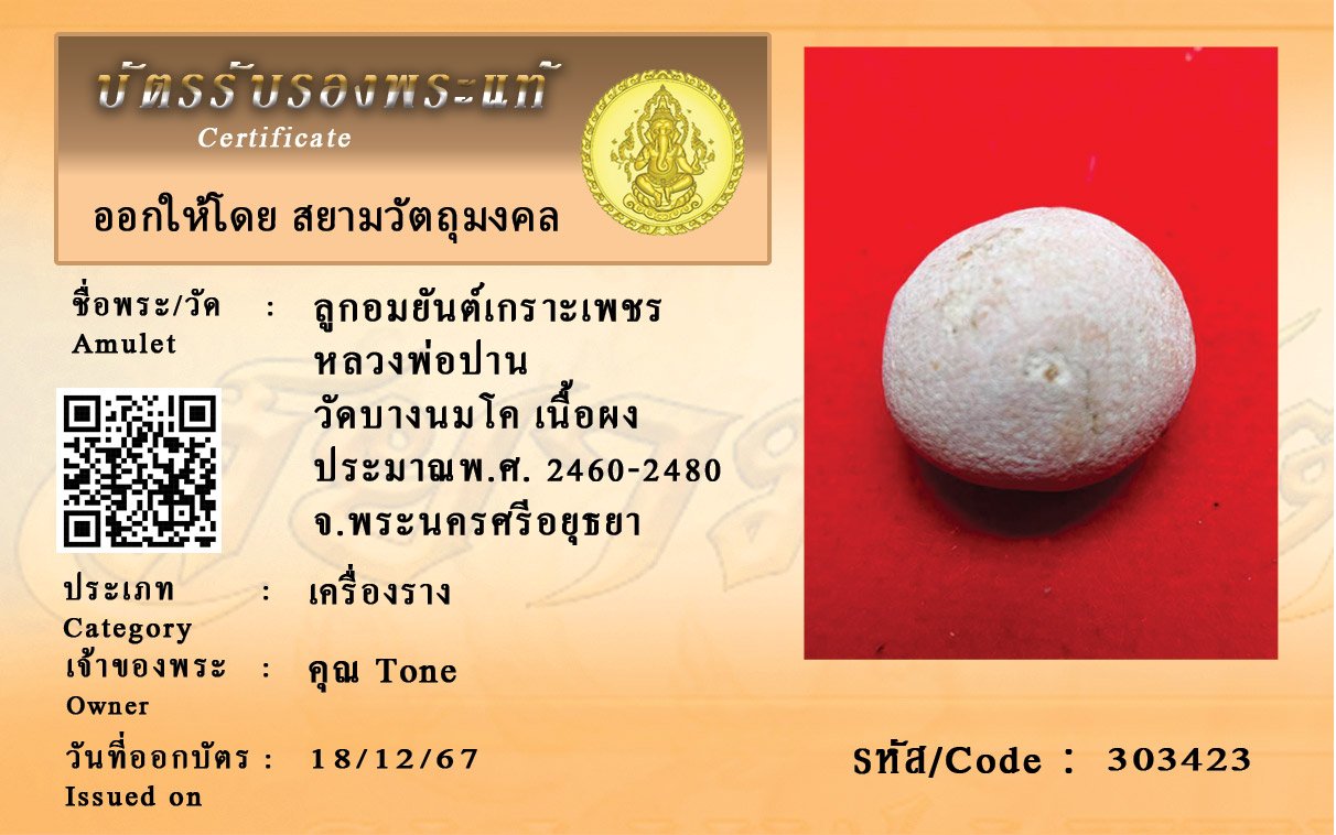 รหัสสินค้า : 303423 ลูกอมยันต์เกราะเพชร หลวงพ่อปาน วัดบางนมโค เนื้อผง ประมาณพ.ศ. 2460-2480 จ.พระนครศรีอยุธยา