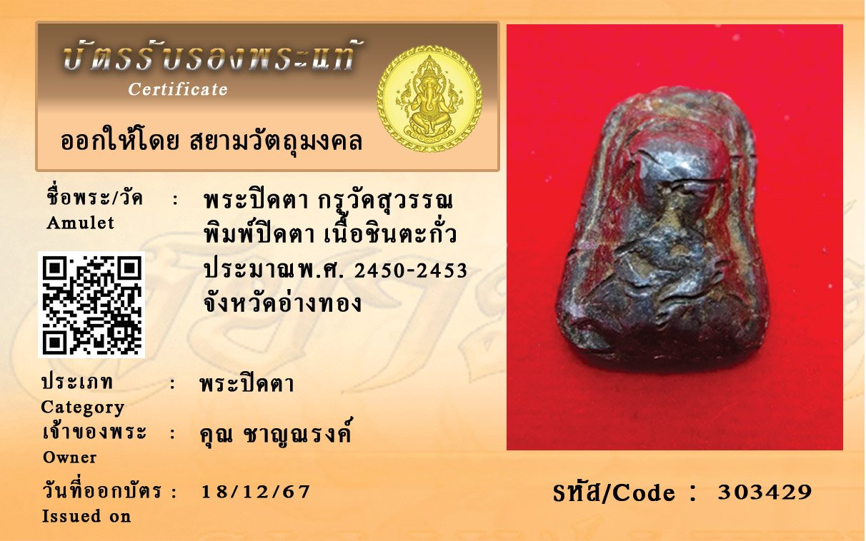 รหัสสินค้า : 303429 พระปิดตา กรุวัดสุวรรณ พิมพ์ปิดตา เนื้อชินตะกั่ว ประมาณพ.ศ. 2450-2453 จังหวัดอ่างทอง