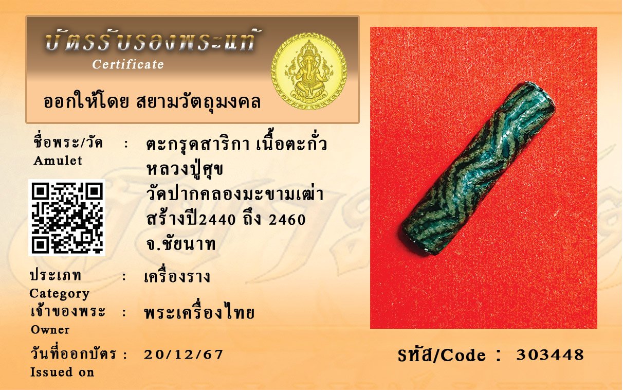 รหัสสินค้า : 303448 ตะกรุดสาริกา เนื้อตะกั่ว หลวงปู่ศุข วัดปากคลองมะขามเฒ่า สร้างปี2440 ถึง 2460 จ.ชัยนาท