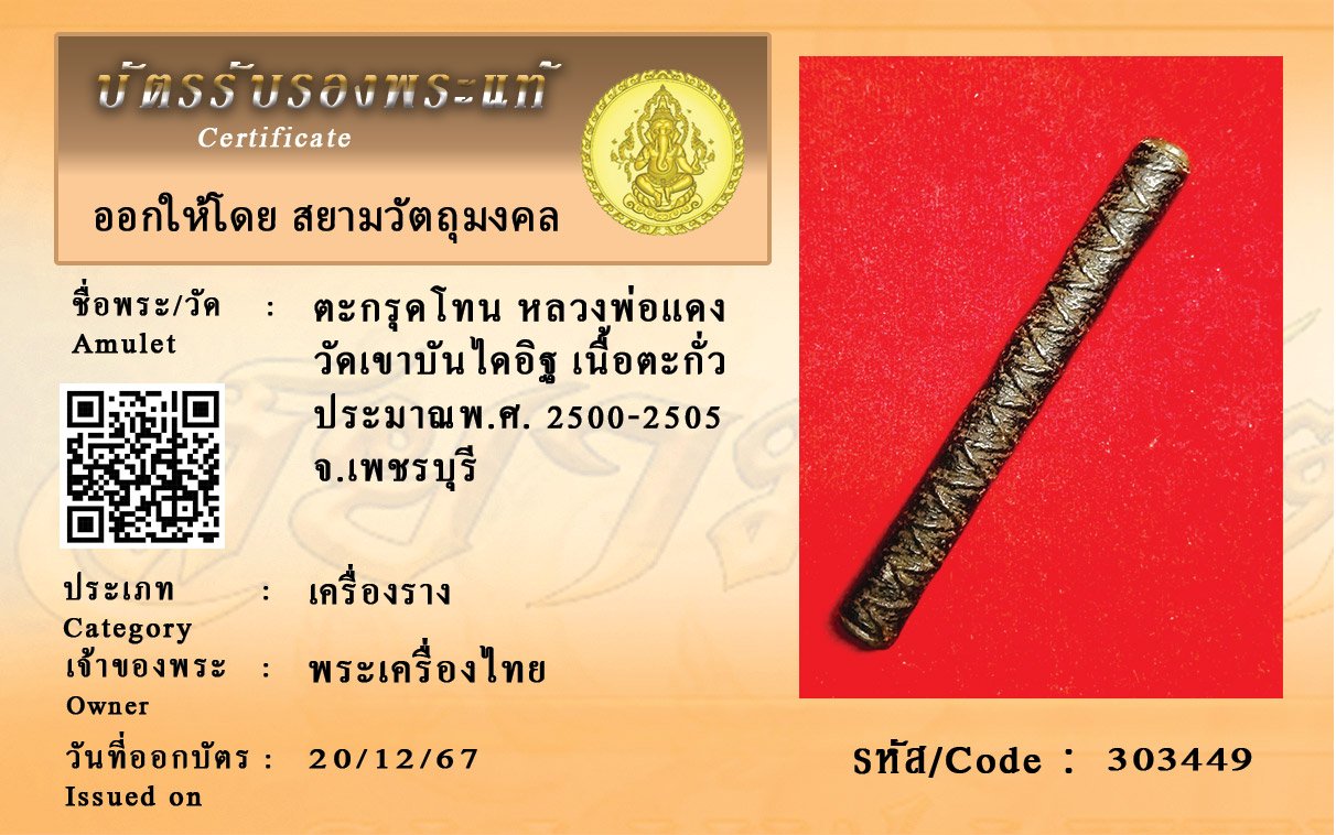 รหัสสินค้า : 303449 ตะกรุดโทน หลวงพ่อแดง วัดเขาบันไดอิฐ เนื้อตะกั่ว ประมาณพ.ศ. 2500-2505 จ.เพชรบุรี