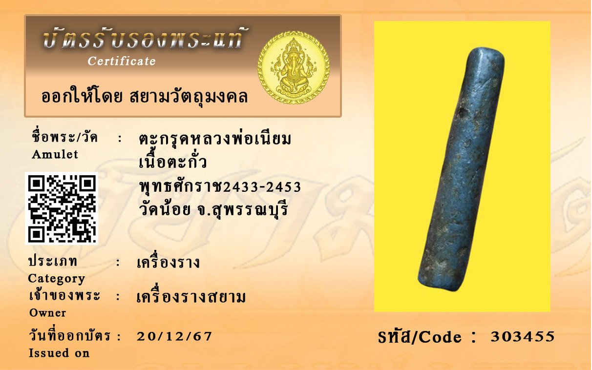 รหัสสินค้า : 303455 ตะกรุดหลวงพ่อเนียม เนื้อตะกั่ว พุทธศักราช2433-2453 วัดน้อย จ.สุพรรณบุรี