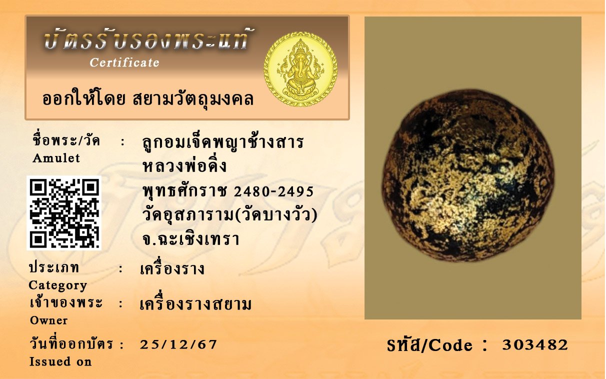 รหัสสินค้า : 303482 ลูกอมเจ็ดพญาช้างสาร หลวงพ่อดิ่ง พุทธศักราช 2480-2495 วัดอุสภาราม(วัดบางวัว) จ.ฉะเชิงเทรา
