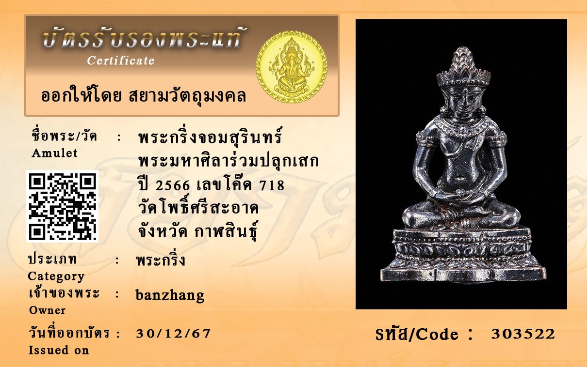 รหัสสินค้า : 303522 พระกริ่งจอมสุรินทร์ พระมหาศิลาร่วมปลุกเสก ปี 2566 เลขโค๊ด 718 วัดโพธิ์ศรีสะอาด จังหวัด กาฬสินธุ์